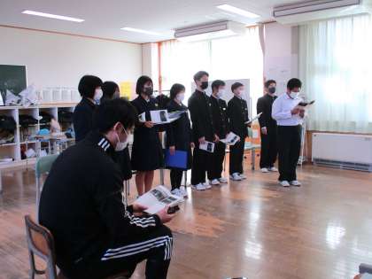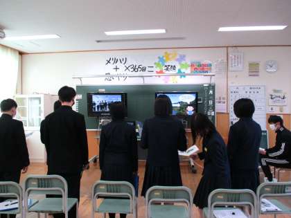 1年2限 「総合的な学習の時間(楡の木タイム)」 公開日 2021/12/09 更新日 2021/12/09 日々の活動から 12月9日(木) 1年生の「総合的な学習の時間(楡の木タイム)」の様子です。 3・4限の岩瀬中学校とのリモート学習のリハーサルをしていました。