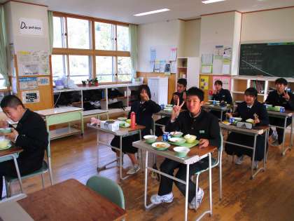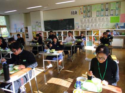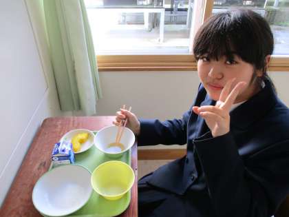 12月9日(木) 3年生の給食風景です。 放送当番の生徒もいました。