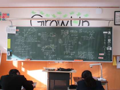 3年2限 数学 公開日 2021/12/10 更新日 2021/12/10 日々の活動から 12月10日(金) 3年生の数学の授業の様子です。 3種類のことをしました。 1番は、章の問題の確認です。 休み時間から自分の考えを上手に黒板に書いてありました。 おかげでスムースにできました。 2番は、数学検定です。 3番は、入試対策問題です。