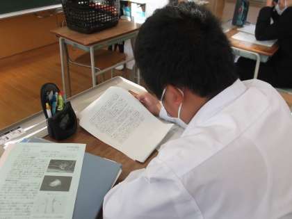 人権作文 感想文 公開日 2021/12/11 更新日 2021/12/11 日々の活動から 12月4日(土)から10日(金)まで人権週間でした。 本校では、毎朝、前年度の人権作文の優秀な作品を読んで感想を書きました。 思いやりの心を育て、「人に優しく」「社会に優しく」できる大人に育っていくことを願っています。 画像は、1年生の取組の様子です。