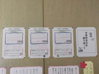 各学級の前の掲示板には、11月に行った「学習発表会を終えて」の作文が掲示されています。