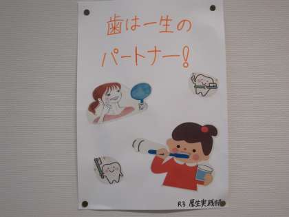 フッ素洗口 公開日 2021/12/19 更新日 2021/12/19 日々の活動から 本校ではお昼の時間にフッ素洗口を行っています。 それとともに厚生実践部が校内に「歯を大切にしよう」と呼びかけるポスターを作成し掲示しています。