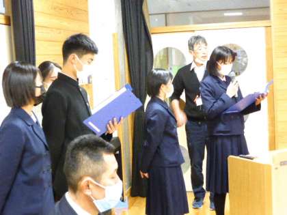 6限 人権集会 公開日 2021/12/13 更新日 2021/12/13 日々の活動から 12月13日(月) 本日6限、先週の「人権週間のまとめ」として、生徒会執行部の主催で「人権集会」を行いました。