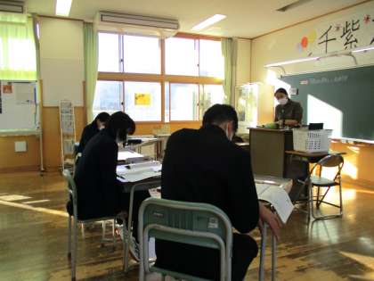 2年1限 「総合的な学習の時間(楡の木タイム)」 公開日 2021/12/14 更新日 2021/12/14 日々の活動から 12月14日(火) 2年生の「総合的な学習の時間(楡の木タイム)」の様子です。 「学習の見直しと進路学習」という内容の授業でした。