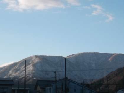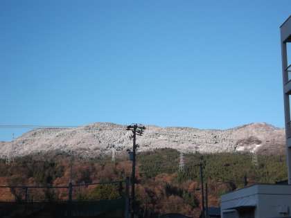 今朝は周辺の山々の上の方が、きれいに白く雪化粧していました。