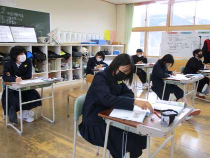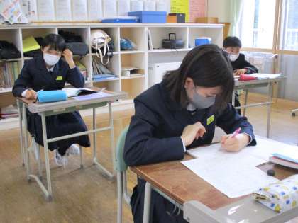 12月16日(木) 1年生の数学の授業の様子です。 さまざまな計算問題に取り組んでいます。