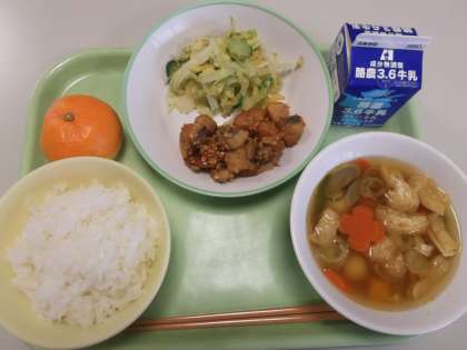 今日の給食 公開日 2021/12/16 更新日 2021/12/16 日々の活動から 12月16日(木) 今日の給食の献立は、次のとおりです。 ○ごはん ○魚と大豆のゆずソースからめ ◯あわせあえ ○冬至のだんご汁 ○牛乳 今日は「冬至のだんご汁」の中に大きな〈花型〉の《にんじん》が入っていました。 また、「あわせあえ」には〈星型〉の《きゅうり》が入っていました。 今日は冬至献立で、だんご汁の団子がとても柔らかくて美味しかったです。