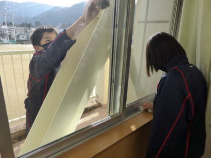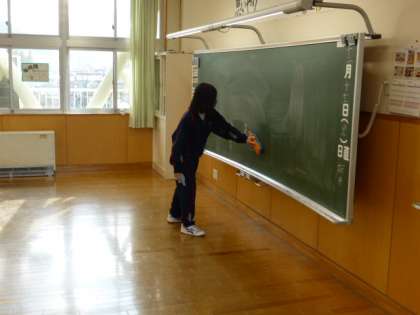 その後、黒板やロッカーの上の面など、きれいに濡れ拭きしていました。