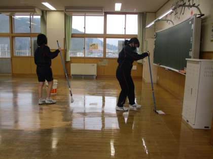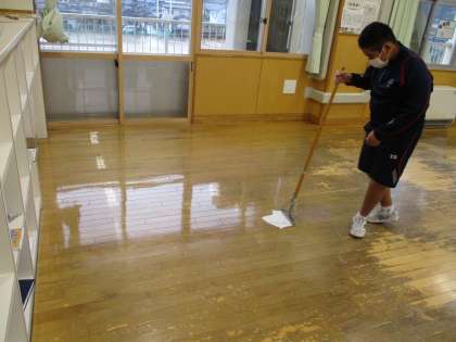 環境実践部 ワックス掛け 公開日 2021/12/17 更新日 2021/12/17 日々の活動から 12月17日(金) 大掃除の後、環境実践部員が各教室のワックス掛けを行いました。 隅々まで丁寧にワックスを掛け、床がぴかぴかに輝いていました。