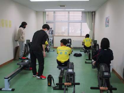 ボート部 公開日 2021/12/18 更新日 2021/12/18 部活動 12月18日(土) ボート部の休日の部活動の様子です。 今日は、OBが二人来てくださいました。 雪の積もったグラウンドを走ってからストレッチ、エルゴトレーニングをし、OBの丁寧なアドバイスをもらいました。 その後、一緒にバスケットボールをしました。