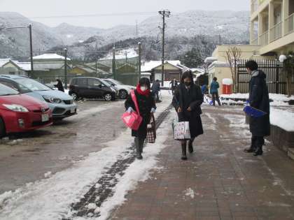 登校風景 公開日 2021/12/20 更新日 2021/12/20 日々の活動から 12月20日(月) 2学期最後の週が始まりました。 残雪が残る中、生徒は元気に登校してきました。 残り4日間です。一日一日を大切に過ごしましょう。 今日と明日は14時から保護者懇談会を予定しています。 お車でお越しの際は、生徒玄関前に駐車してください。