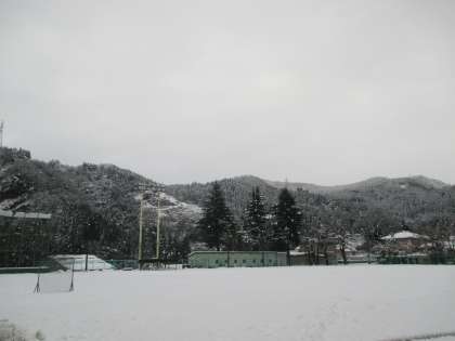 グラウンドは、一面真っ白です。