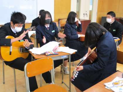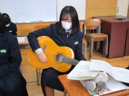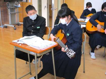 12月20日(月) 3年生の音楽の授業の様子です。 ギターの練習をしていました。