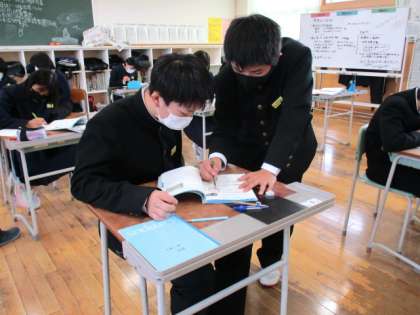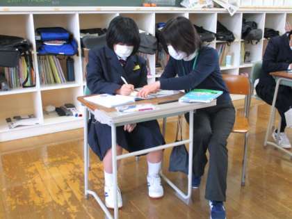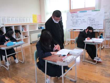 1年3限 数学 公開日 2021/12/20 更新日 2021/12/20 日々の活動から 12月20日(月) 1年生の数学の授業の様子です。 これまでの復習をしています。 分からない部分を積極的に質問しています。