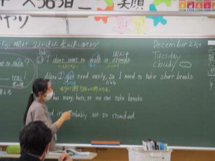 「”Let's climb Mt.fuji”を読んで2人が選んだ登山道をあてよう」という内容の授業でした。
