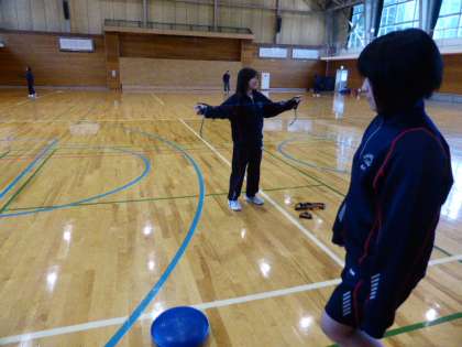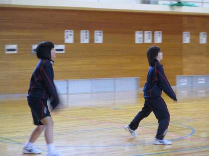 陸上競技部は、積雪のためグラウンドが使えないので体育館で活動しました。