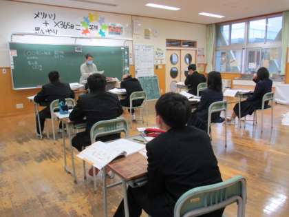 1年2限 家庭科 公開日 2021/12/22 更新日 2021/12/22 日々の活動から 12月22日(水) 1年生の家庭科の授業の様子です。 「○○家の雑煮」という内容の授業でした。 授業の中で食品の賞味期限や保存方法について学んでいました。 「どんな食品も冷蔵庫があれば、何日でも保存できる。」 ○ か × か