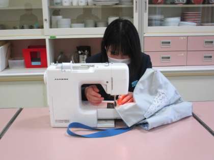 12月22日(水) 2年生の家庭科の授業の様子です。 カバン作りをしています。
