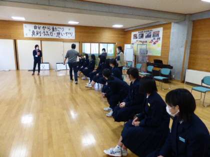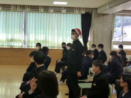 5限 ハートフル集会 公開日 2021/12/23 更新日 2021/12/23 日々の活動から 「これで集会を終わってもいいのか?」という問いかけに 突然サンタが「ちょっと待ったー」と現れました。 そのご「○○してはいけない」がテーマの全校でのレクリェーションを行いました。 まず。男女毎に「しゃべってはいけない」というテーマで生まれた日付順に並びかえました。女子が若干早かったです。