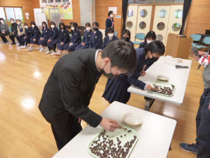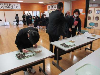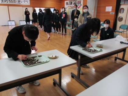 『ドングリを箸でつまんで皿に移す』リレーを行いました。