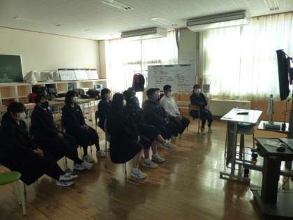 Nシネマ 公開日 2021/12/23 更新日 2021/12/23 日々の活動から 学習実践部主催で『Nシネマ』という企画がありました。 『途中まで映画を見て、残りは本を読んでね』という企画です。 1年生教室では「仮面病棟」という映画が上映されていました。 けっこう怖い場面がありましたが、生徒は平然と見ていました。