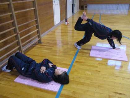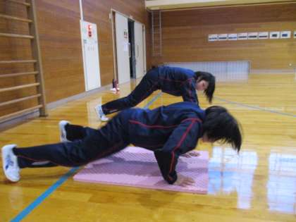ソフトボール部 公開日 2021/12/23 更新日 2021/12/23 日々の活動から 12月23日(木) 本日のソフトボール部の活動の様子です。 体育館で体幹トレーニング等を行いました。 オフシーズンの間にしっかり体力づくりを行っていく予定です。