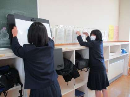12月24日(金) 1年生の学級活動の様子です。 新年に向けて教室の環境を整えていました。