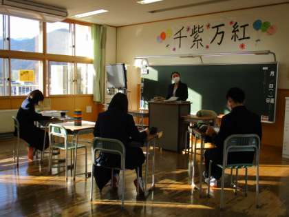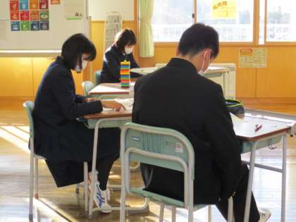 2年1限 学級活動 公開日 2021/12/24 更新日 2021/12/24 日々の活動から 12月24日(金) 2年生の学級活動の様子です。 『今学期を振り返って』と『来学期に向けて』の作文を書いていました。