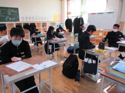12月24日(金) 担任から学習室で通知票を受け取りました。 他の生徒は教室で自習をしていました。