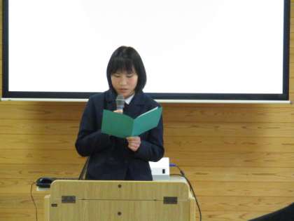 終業式では、まず最初に代表生徒の意見発表がありました。