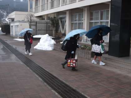 登校風景 公開日 2022/01/11 更新日 2022/01/11 日々の活動から 1月11日(火) 本日、3学期のスタートです。 今日は、始業式の後、校内書き初め大会を行います。 令和4年の初め、3学期のスタートにあたり、決意を込めてそれぞれの行事に臨んでもらいたいと思います。