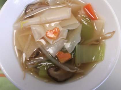 「ワンタンスープ」の中には、小さくかわいい〈ハート型〉の《にんじん》が入っていました。