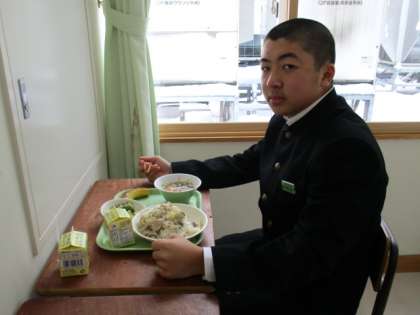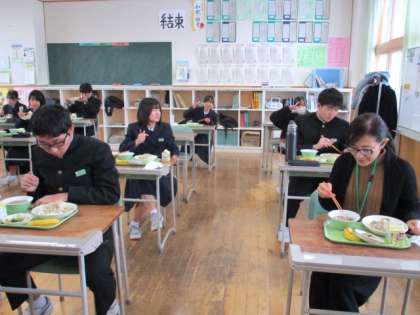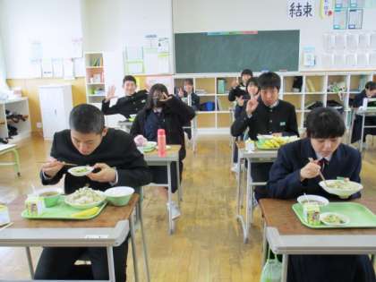 1月12日(水) 3年生の給食風景です。 放送当番の生徒もいました。
