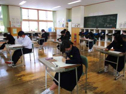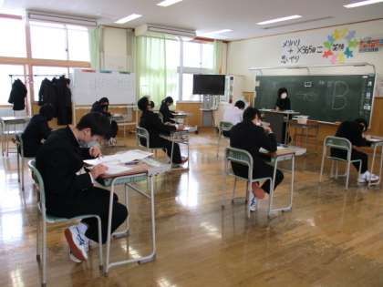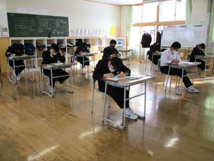 1月12日(水) 1年生の数学の授業の様子です。 冬休み明けテストをしました。