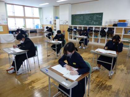 1月13日(木) 1年生の国語の授業の様子です。 冬休み明けテストを行いました。