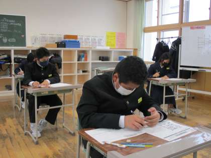 1月13日(木) 1年生の英語の授業の様子です。 冬休み明けテストを行いました。