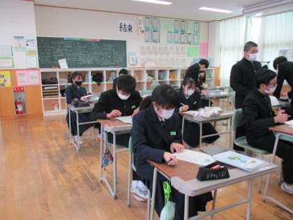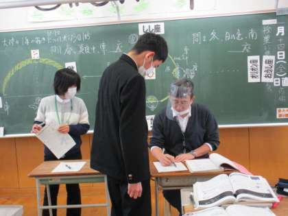 仕上がった生徒から教科担任へ採点してもらいに提出していました。