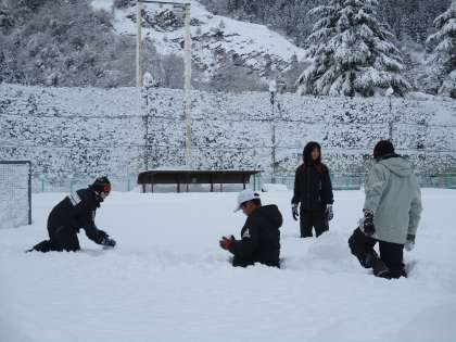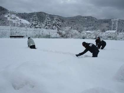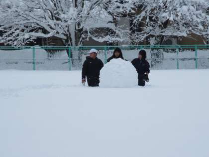 休日部活動 ボート部 公開日 2022/01/15 更新日 2022/01/15 部活動 1月15日(土) ボート部の休日の活動の様子です。 今日は雪深いグラウンドでトレーニングを行いました。 足下の悪い雪上で雪玉を転がし、下半身を強化しました。 だんだん重たくなる雪玉を上手に下半身を使って転がしていました。 できあがった雪玉は大きな雪だるまになりました。