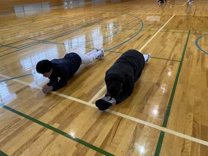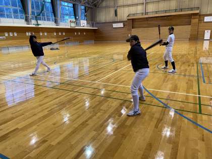 継続して体幹トレーニングを行った後、ノックや素振りをしました。