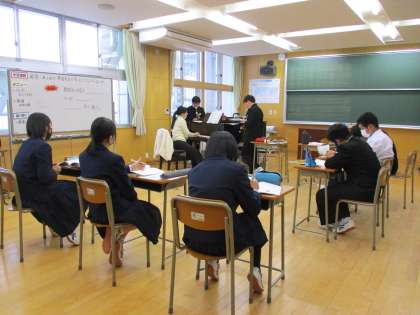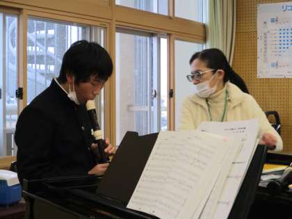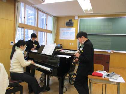 1月18日(火) 1年生の音楽の授業の様子です。 アルトリコーダーのテストを行いました。