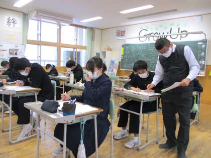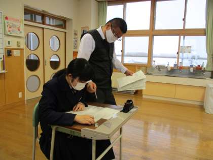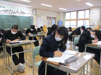 3年1限 数学 公開日 2022/01/18 更新日 2022/01/18 日々の活動から 1月18日(火) 3年生の数学の授業の様子です。 私立高校の過去の問題に挑戦しました。 授業担当者が、一人一人にアドバイスしていました。