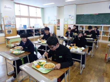 1月18日(火) 3年生の給食風景です。 放送当番の生徒もいました。