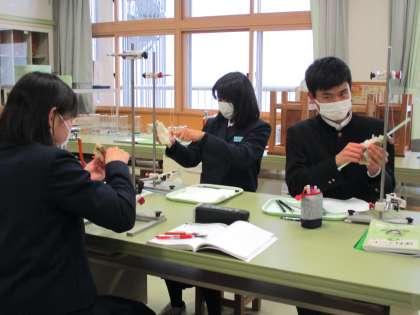2年6限 理科 公開日 2022/01/18 更新日 2022/01/18 日々の活動から 1月18日(火) 2年生の理科の授業の様子です。 理科室で実習を行い「剥がれない知識」となるように学習しています。