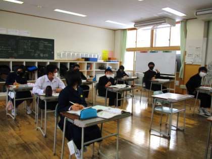 1年2限 家庭科 公開日 2022/01/19 更新日 2022/01/19 日々の活動から 1月19日(水) 1年生の家庭科の授業の様子です。 全国の「行事食」ということで、お雑煮について学習しました。