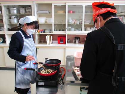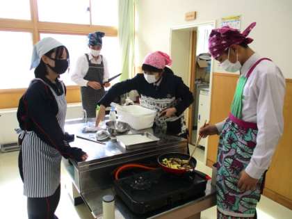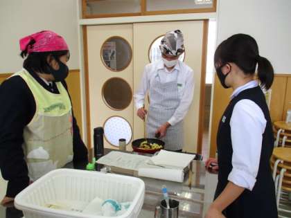 1月19日(水) 3年生の家庭科の授業の様子です。 「幼児のおやつ作り」として大学いもを作りました。