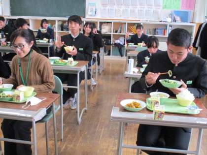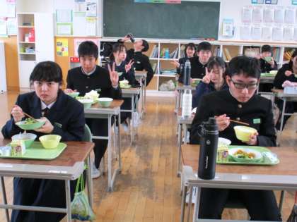 1月19日(水) 3年生の給食風景です。 放送当番の生徒もいました。