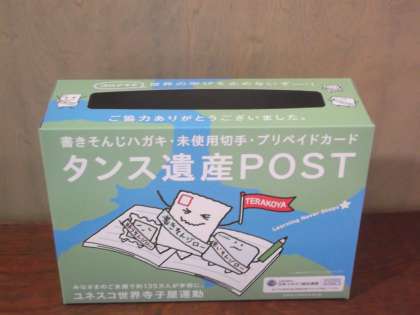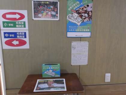 新年になって「年賀状」の書きそんじや使用しなかった年賀状など、地域の公共施設でも回収させてもらっていますが、学校でも職員室前に設置して、教職員及び生徒の家庭にある書きそんじはがきを回収しています。