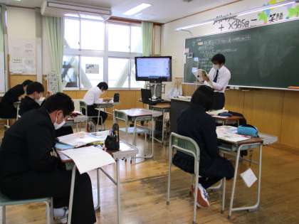 1年3限 社会 公開日 2022/01/20 更新日 2022/01/20 日々の活動から 1月20日(木) 1年生の社会の授業の様子です。 「最先端をいくアメリカの工業の特徴を知ろう」という内容の授業でした。