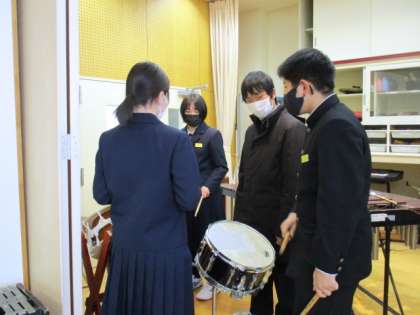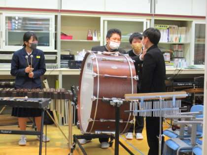 1年3限 音楽 公開日 2022/01/21 更新日 2022/01/21 日々の活動から 1月21日(金) 1年生の音楽の授業の様子です。 「それぞれのパートはどんな役割をしているか?」 「旋律の重なりをどのよにすると効果的か?」を考えながら演奏する授業でした。