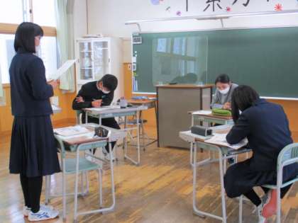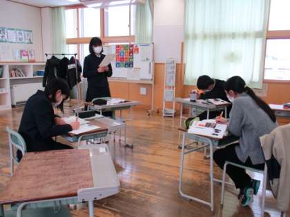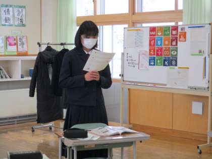 2年6限 「総合的な学習の時間(楡の木タイム)」 公開日 2022/01/21 更新日 2022/01/21 日々の活動から 1月21日(金) 2年生の「総合的な学習の時間(楡の木タイム)」の様子です。 各自が調べた高校について発表していました。
